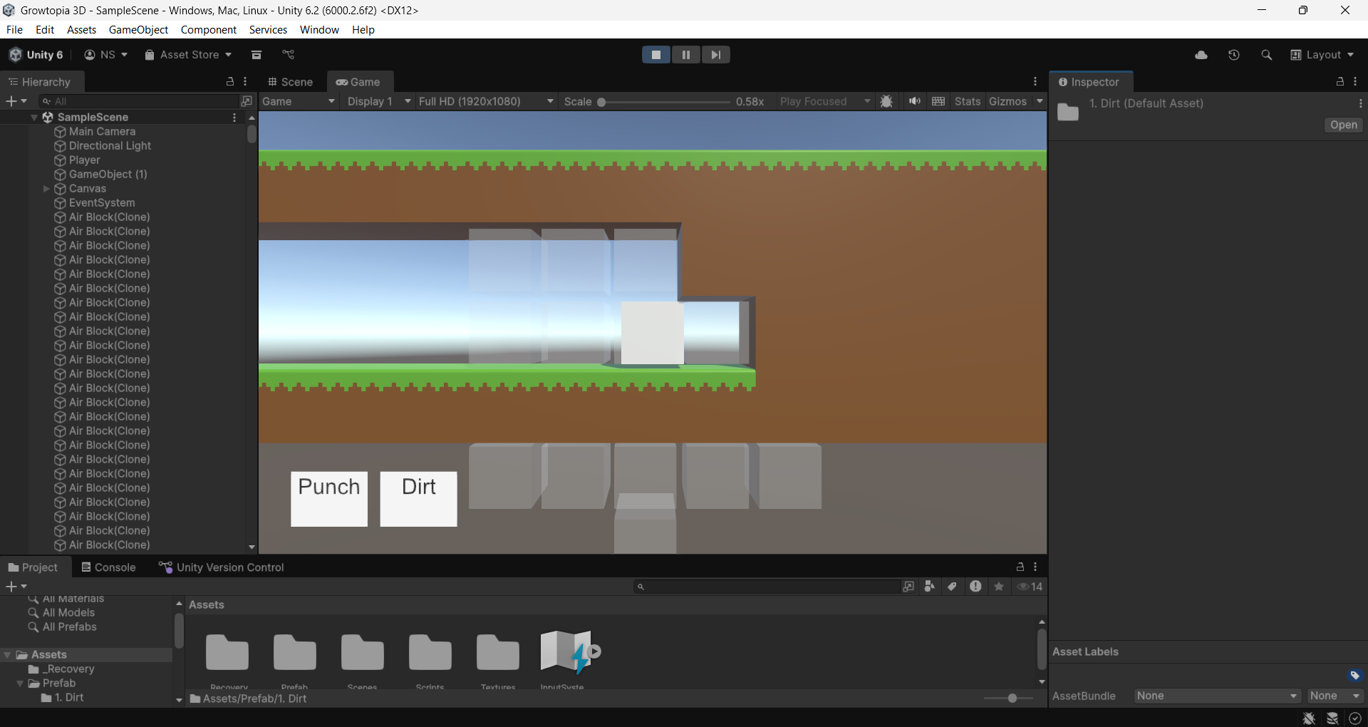 Played Growtopia but had so many login and performance issues that make me quit and hate the game. But I still love the gameplay that lead me to make a copy but 3D version of it. Not finished or I can say it was stopped at functions programing so the graphics was not ready.